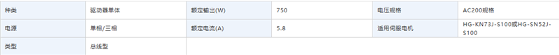 额定输出功率 0.75kW,额定输出电流 5.8A,适配 HG - KN73J - S100、HC - KFS73 等 750W 级伺服电机;搭配编码器时可实现高精度定位,有版本适配 17 位编码器(分辨率 131072 脉冲 / 转),也有版本适配 22 位编码器(分辨率 2097152 脉冲 / 转)。